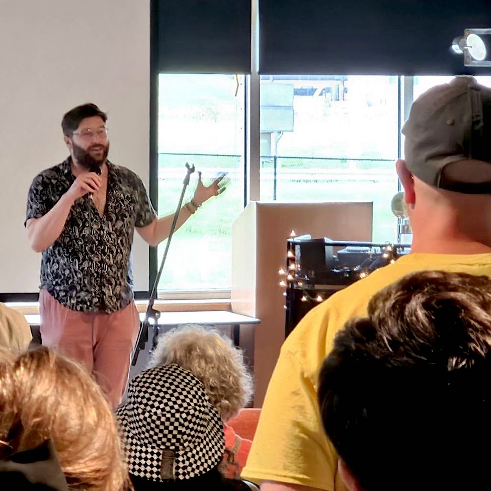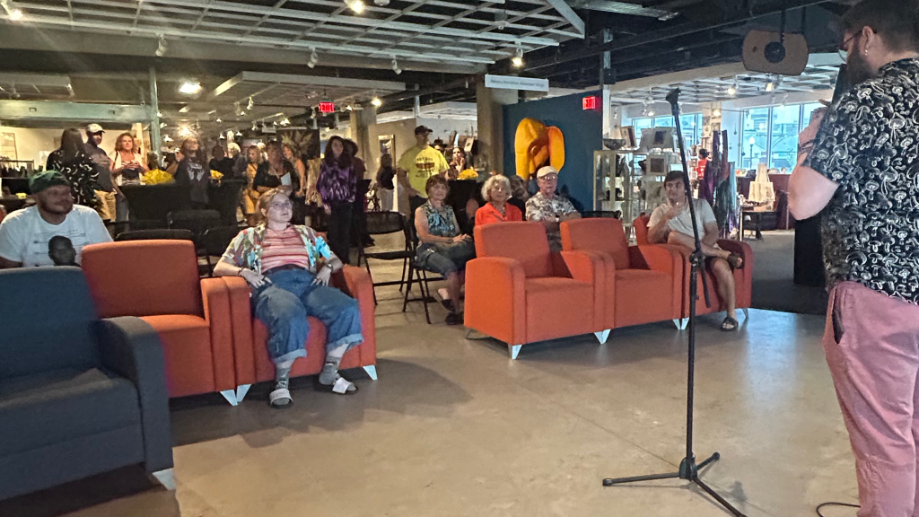 Hosting an open mic at the 2023 ARTeriors hosted by the Atlantic City Arts Foundation
