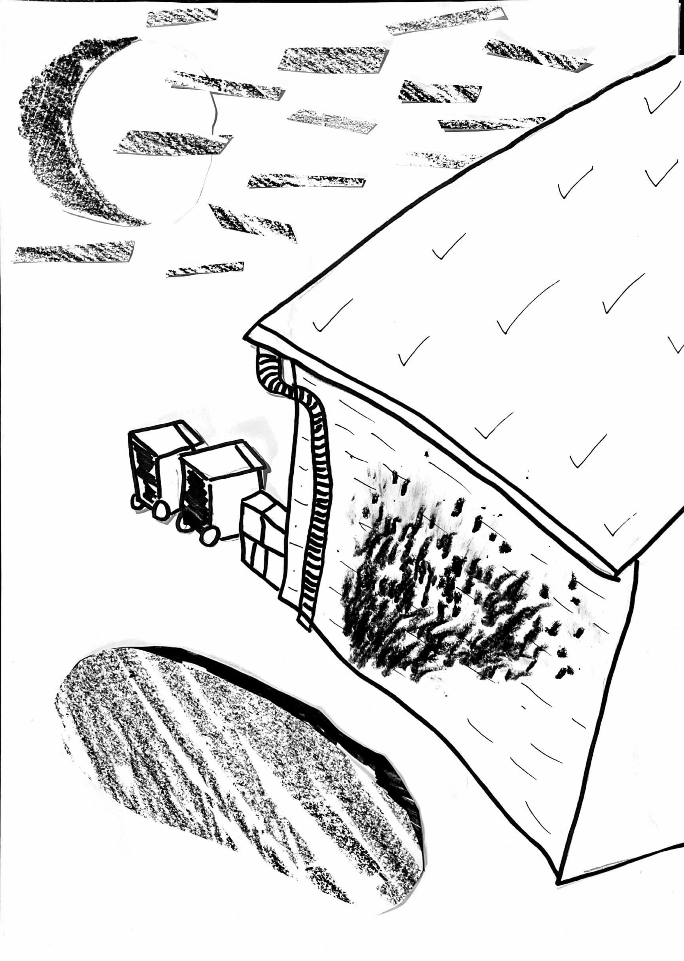 This zine was made using cut pieces of paper placed on a large background, photographed at a large scale to preserve quality. The layering of paper along with strong, direct light produced shadows that could act as part of the drawings.