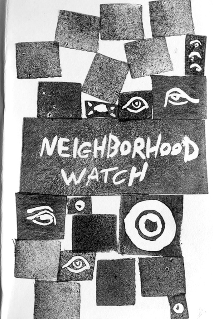 The final line, “the neighborhood watches over / stay, let’s make dinner / no grieving on an empty stomach,” recontextualizes the concept of the neighborhood watch as something inviting and healing rather than punitive and racist.