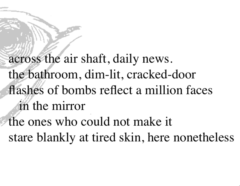The poem, an ode to likeness, survivor’s guilt, and the recognition of mounting threats of oppression globally, is also a prayer, a hope that even just a little piece of folded paper can keep us abreast of the horrors of the world—and help us feel together in the struggle.